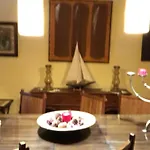 The villa offers a dining area with coffee/tea making equipment. On-site self-catering also includes a fridge, an oven, and kitchenware.
